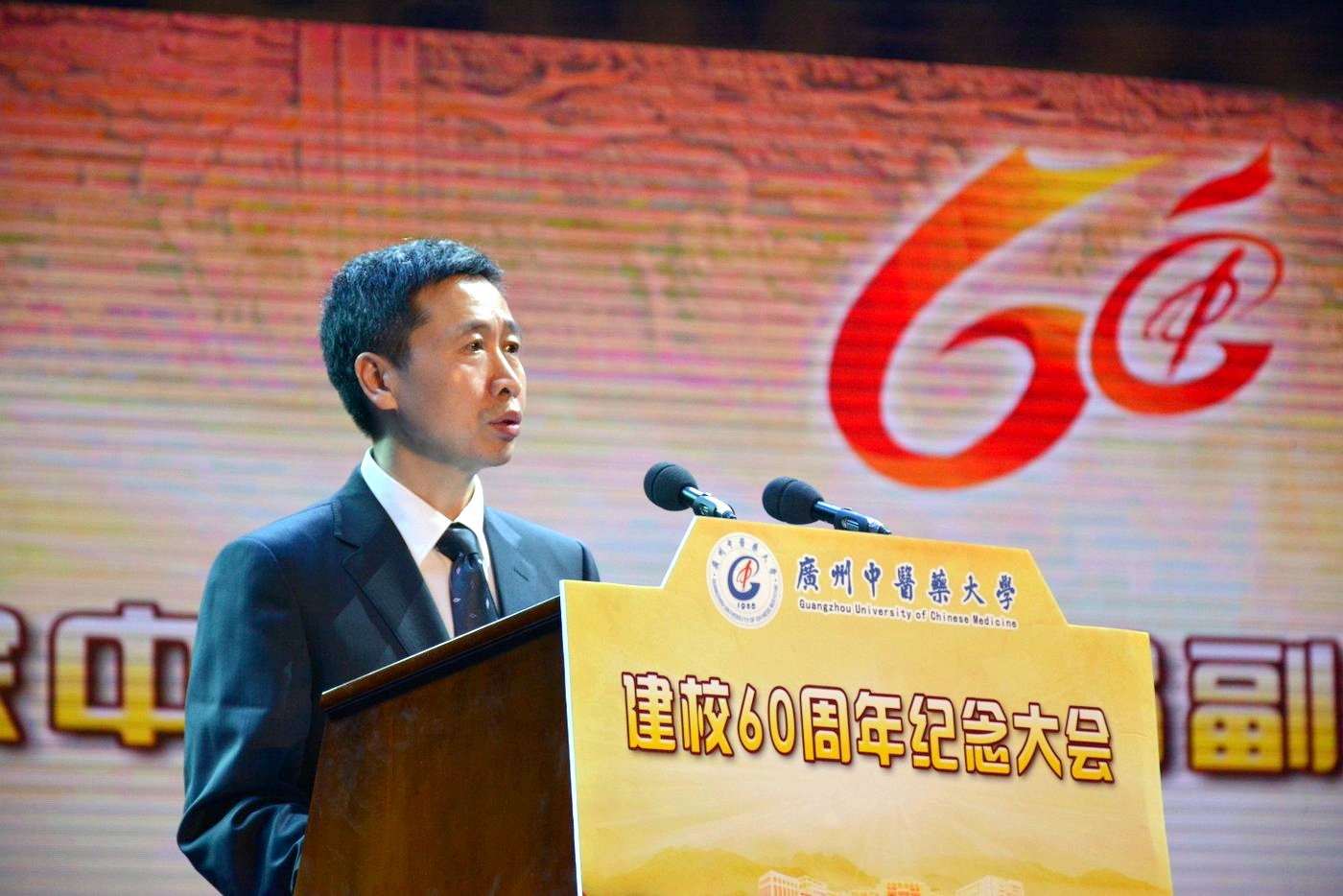 六十年追逐梦想、春华秋实;六十年辛勤耕耘、名师辈出;六十年大医精诚、服务人民。”黄业斌高度评价了学校六十年发展所取得的成就。“母校作为我人生观、世界观塑造的摇篮,给了我一把走向社会和开启未来的金钥匙,永远都是我生命中最珍贵的青春回忆,是我终身眷恋的精神家园。”作为校友,黄业斌对老师们当年的教诲表示衷心感谢,对学校六十年所取得的成就感到欢欣鼓舞。他希望学校紧抓中医药发展上升为国家战略以及中医药国际化进程提速等机遇,开拓进取,奋发有为,为健康中国和广东中医药强省建设,为广东实现“三个定位、两个率先”的目标,为实现中华民族伟大复兴的中国梦作出新的更大的贡献。