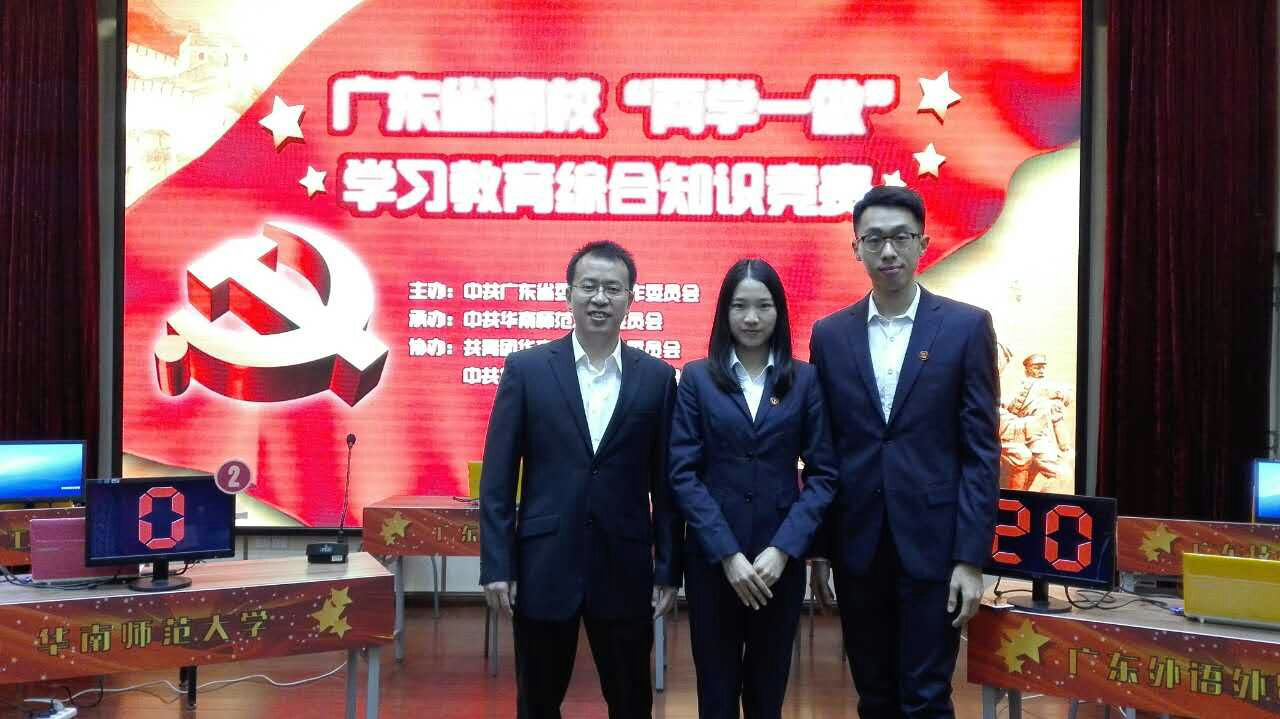 12月15日,由广东省委教育工委主办,华南师范大学承办的广东省高校“两学一做”综合知识竞赛在华南师范大学举行。中山大学、华南理工大学、华南师范大学、william威廉中文官网、广东工程职业技术学院等18所在第一阶段网络考学综合成绩排名在前的高校获得此次参赛资格。我校由校内党规党纪知识竞赛一等奖获得者、护理学院陈其煌老师组队参加比赛。