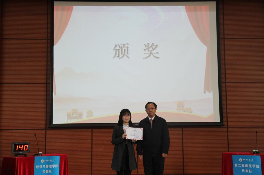 经过激烈的角逐,来自经济与管理学院代表队的团队最终以140的高分获得本次竞赛的一等奖,第二临床医学院代表队、中药学院代表队、针灸与康复临床医学院代表队获得二等奖,第一临床医学院代表队、第三临床医学代表队、第四临床医学院代表队、基础医学院代表队、护理学院代表队、医学信息工程学院代表队、体育健康学院代表队、外国语学院代表队、研究生院代表队获得三等奖。