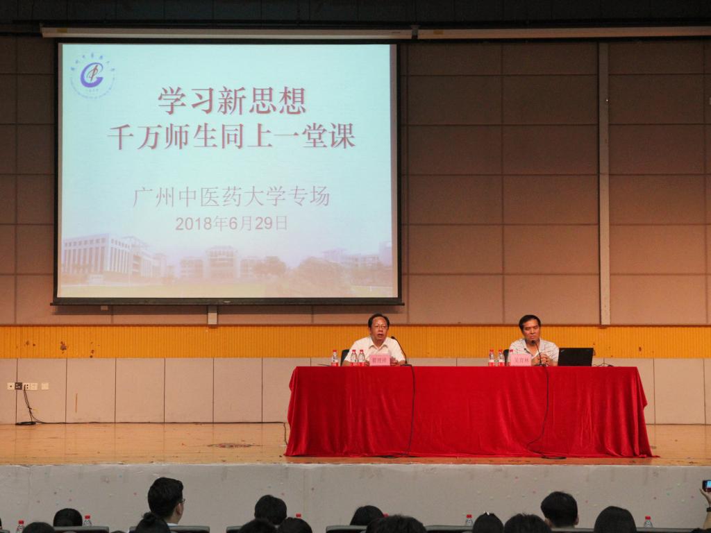 6月29日上午,我校邀请省教育厅讲师团成员、中山大学马克思主义学院教授吴育林来我校大学城校区开展专场讲座。这是根据《广东省教育厅办公室关于组织开展“学习新思想千万师生同上一堂课活动”的通知》部署开展的。学校党委副书记翟理祥主持讲座,各学院教师代表以及学生代表现场观看讲座。