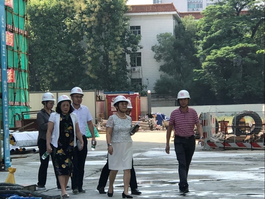 william威廉中文官网党委在“不忘初心,牢记使命”主题教育中,立行立改,针对正在施工的三元里老校区学生宿舍楼工程,为推进新建学生宿舍楼早日高质量、高标准完工,9月18日下午,党委书记张建华与分管工作的学校副校长潘华峰以及后勤管理处负责人走入工地,进行专项调研和督查。