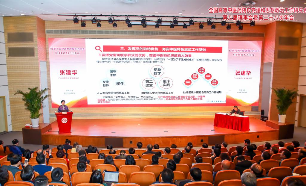 12月27日,全国高等中医药院校党建和思想政治工作研究会第八届理事会暨第二十八次年会在上海中医药大学召开,我校党委书记张建华代表学校党委作大会交流发言。