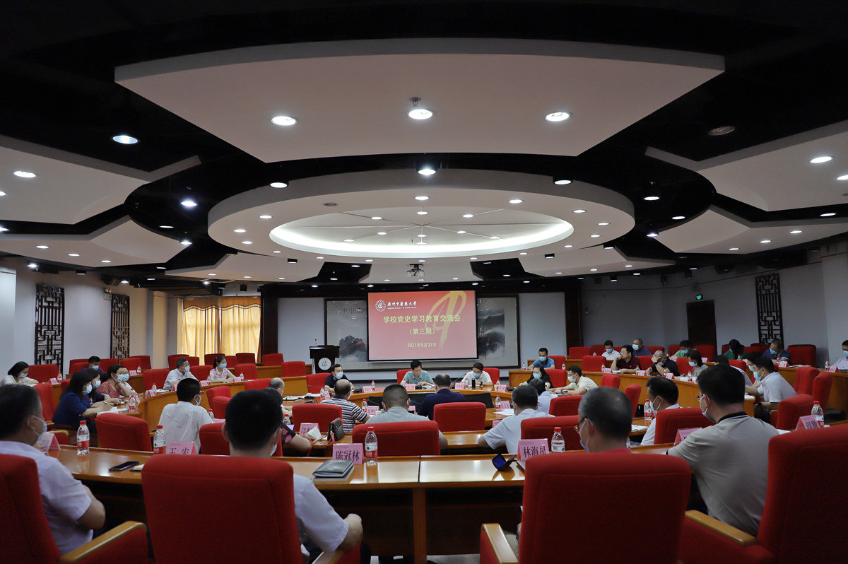 5月27日下午,学校党史学习教育第三期交流会在大学城校区办公楼101会议室召开。校长王伟主持会议并讲话。党委副书记、纪委书记白建刚及副校长潘华峰作重点发言。