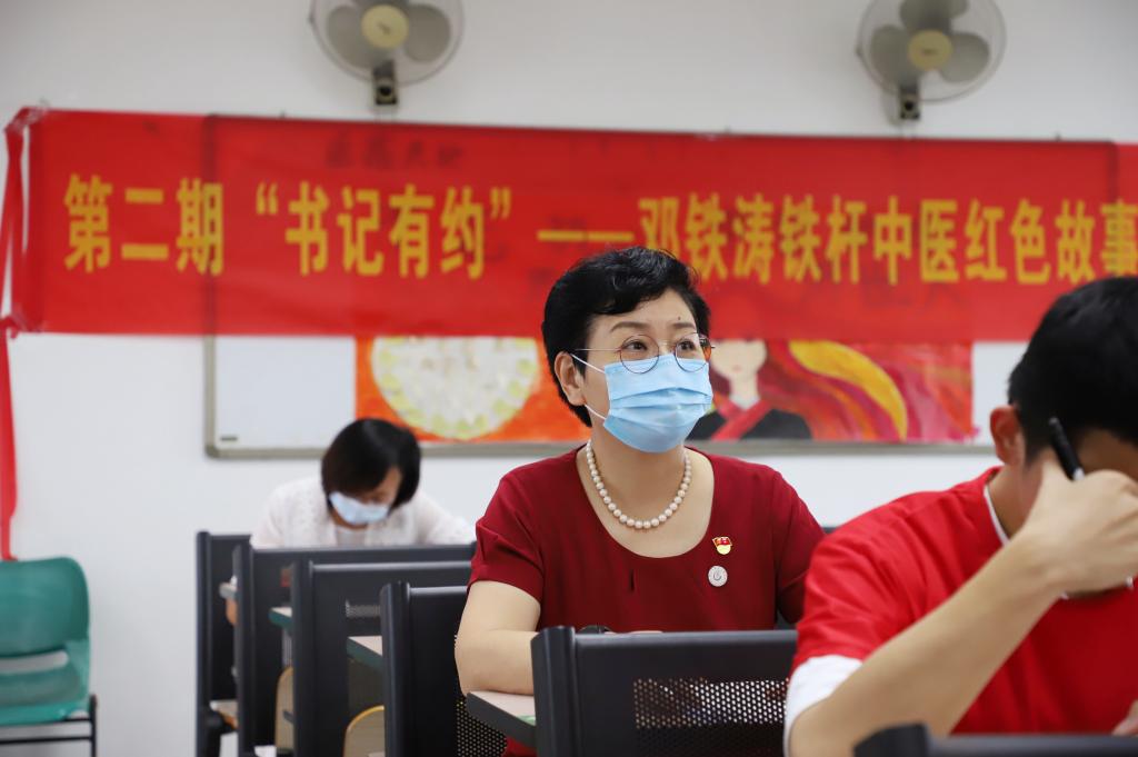 6月28日下午,学校党委书记张建华走进课室与第一临床医学院2020级铁涛班同学们共话铁涛红色故事,共述铁杆中医精神,学习邓铁涛同志对党无限忠诚的政治品质、精诚关爱人民的大医精神和勇攀医学高峰的创新精神,勉励同学们坚定中医药文化自信,扛起党和国家赋予的时代重任,努力苦练本领,用中医药服务人民群众,守护人民群众生命健康,为传承中医药文化、发展中医药事业不懈奋斗。