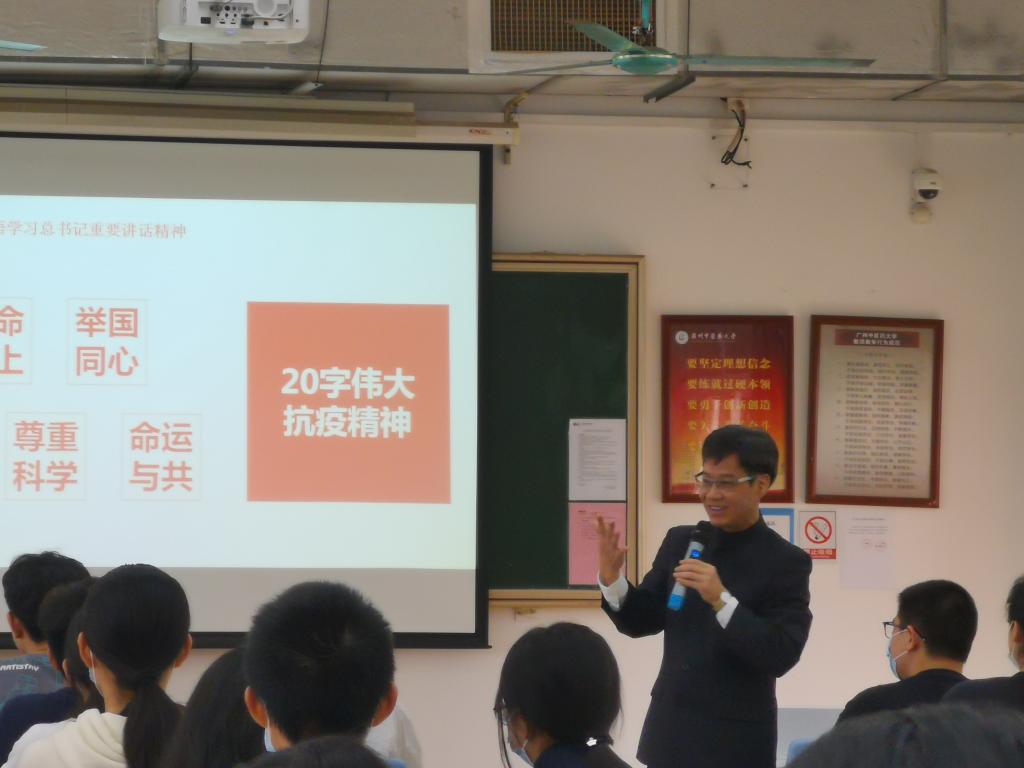 3月14日上午,学校党委常委、副校长,第二临床医学院(第二附属医院、广东省中医院)党委委员、副院长张忠德以《从伟大抗疫精神中汲取青春奋进力量》为主题,为第二临床医学院2021级中医学5+3一体化、中医学9年制班级学生讲授新学期“思政第一课”。