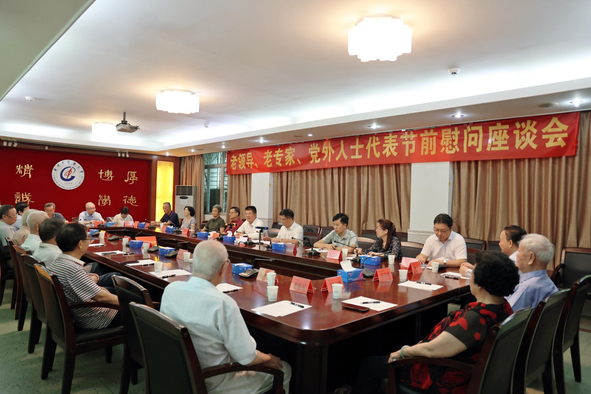 9月28日下午,在中秋节、国庆节来临前夕,学校党委在三元里校区召开老领导、老专家、党外人士代表节前慰问座谈会。学校党委书记陈文锋认真听取老领导、老专家、党外人士代表的意见和建议,共谋推动学校发展的良策。党委副书记邱亚洪通报了今年以来学校发展情况。