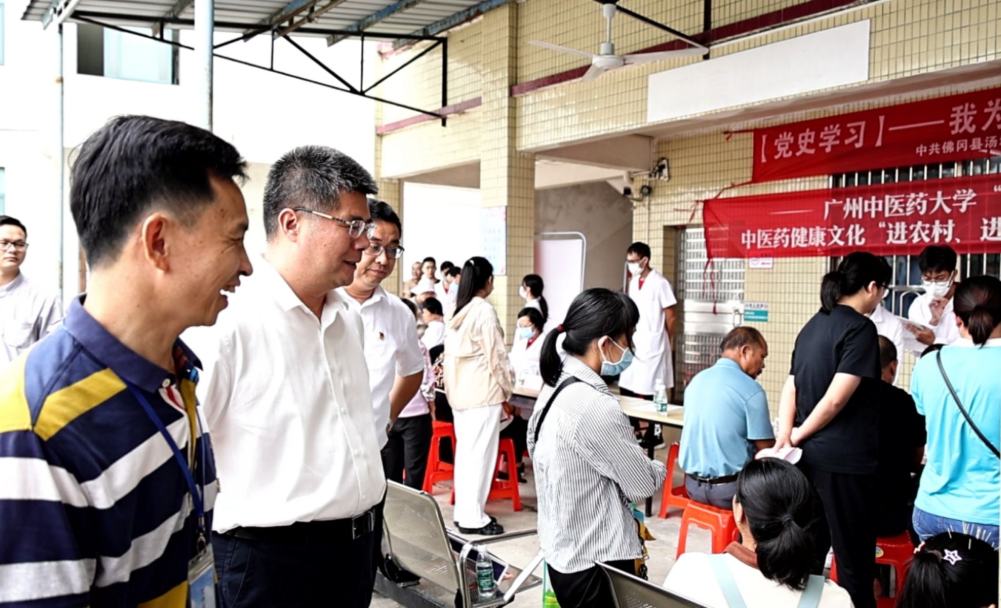 调研组还前往了佛冈县汤塘镇中心卫生院调研学校“双百行动”送医下乡惠民义诊活动开展情况,看望了在此开展大型义诊咨询和科普宣传活动的国际学院、基础医学院、针灸康复临床医学院的教师与学生。