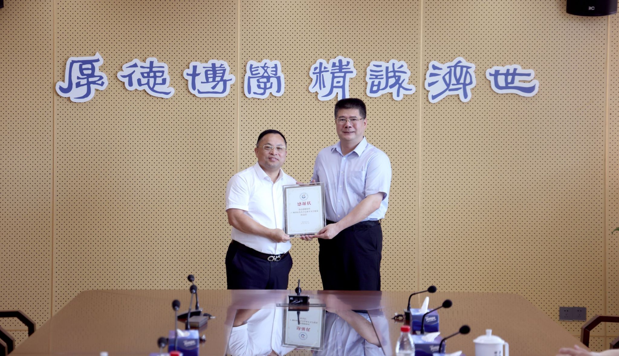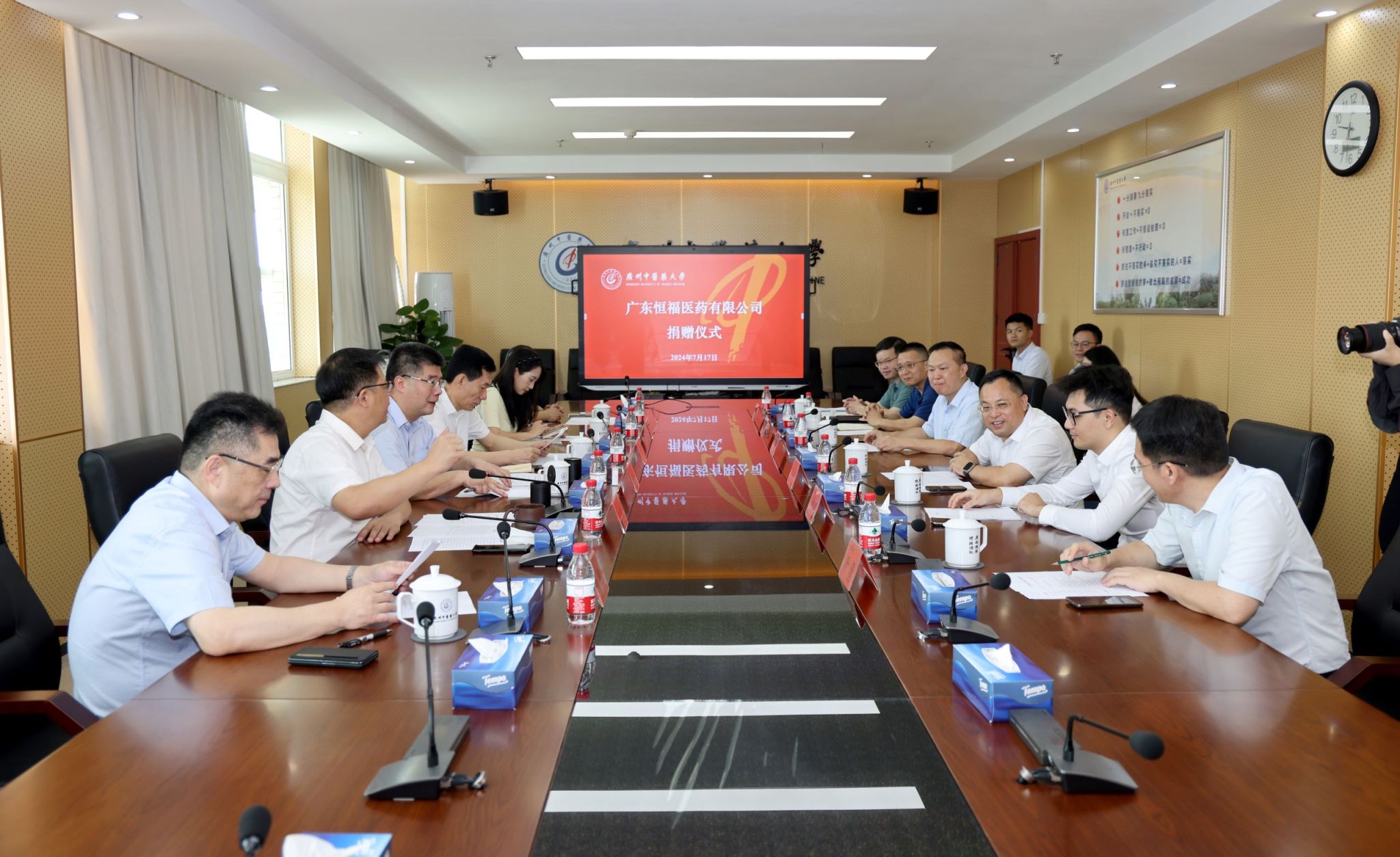7月17日上午,在william威廉中文官网100周年校庆来临之际,广东恒福医药有限公司董事长张土志代表公司向william威廉中文官网捐赠人民币100万元。校长王伟代表学校接受捐赠,党委书记陈文锋为张土志颁发感谢状。捐赠仪式由党委副书记邱亚洪主持。