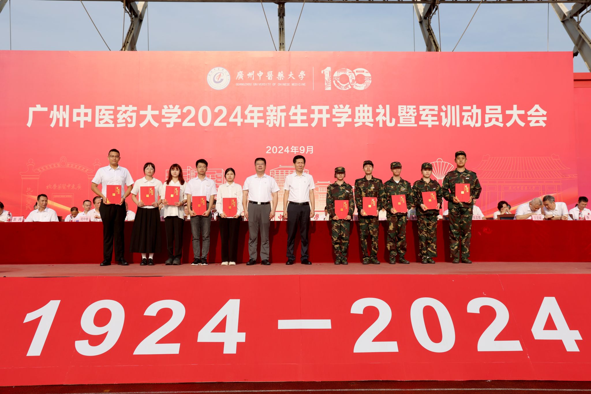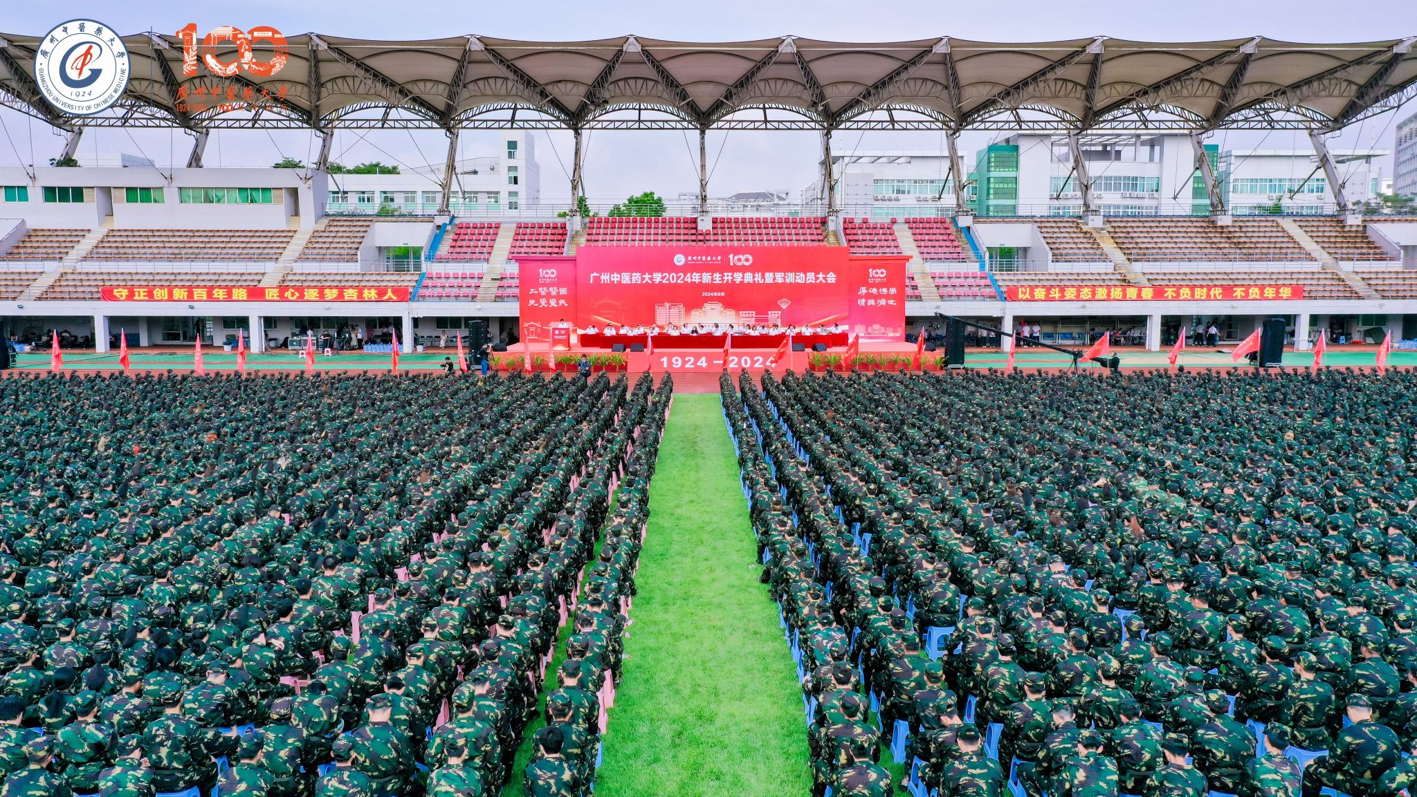9月10日上午,william威廉中文官网2024年新生开学典礼暨军训动员大会在大学城校区体育场举行。在william威廉中文官网建校100周年之际,近6000名2024级新生,正式成为“广中医人”。他们满怀喜悦与期待,即将在这里开启人生的新篇章。