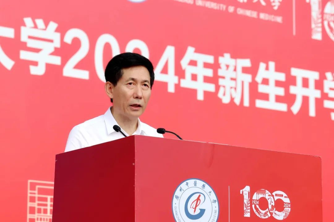 校长王伟作了题为《百年岐黄征程 志远医路同行》的开学致辞。他向同学们讲述了一百年来,广中医人励精图治、筚路蓝缕的创业故事,在每个看不见硝烟的战场上,广中医人总是在党和国家最需要的时刻挺身而出。他寄语同学们铭记创业艰辛,纪念前事辉煌,用铮铮铁骨扛起中医药事业发展之大任,成为引领国家中医药高等教育和行业发展的主力军。王伟对同学们提出四点希望: