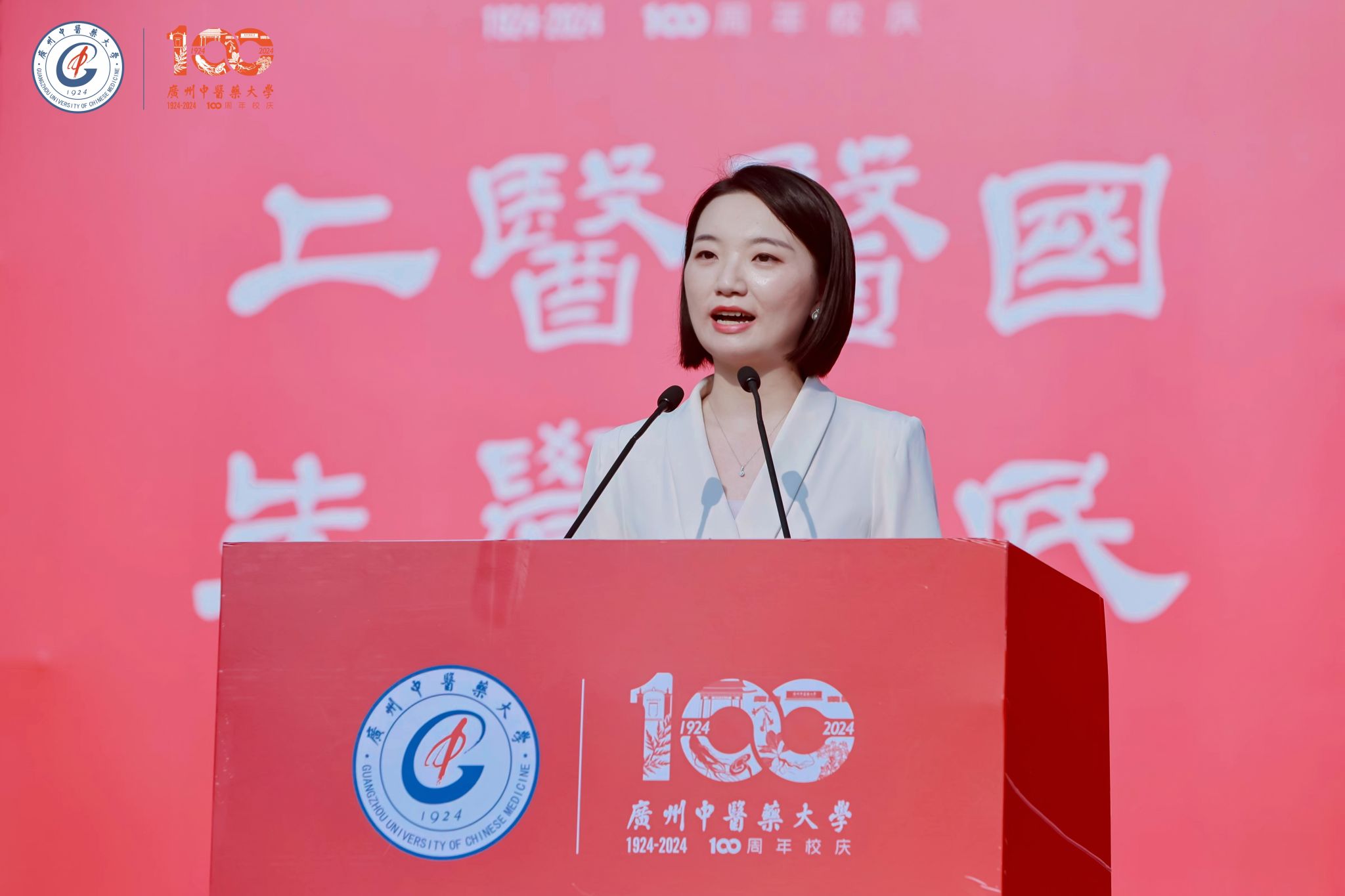 第二临床医学院2022级博士研究生李荣蓉作为在校生代表发言。她分享了自己从校园生活到走进临床一线,再到进入博士大门的故事,勉励广中医青年要志存高远,知物由学;躬身实干,锤炼本领;敢于攀峰,勇担大任,赓续永久奋斗的优良传统,砥砺奋斗的青春本色,在实现中华民族伟大复兴的时代洪流和奋进“中国特色、世界水平”的双一流中医药大学新征程中踔厉奋发、勇毅前行。