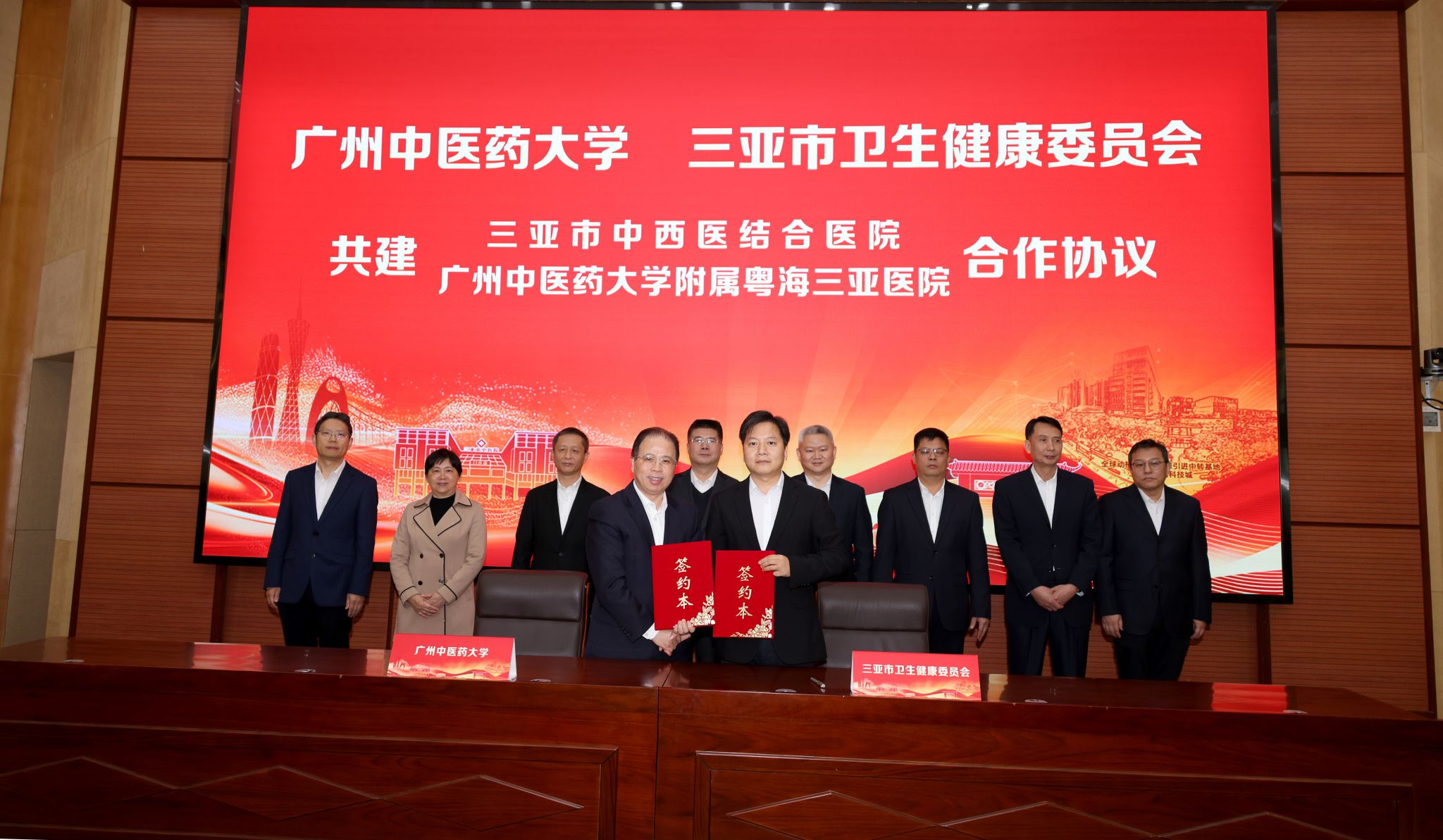 副校长刘中秋与三亚市卫生健康委员会党委书记、主任胡玉蕾签订共建三亚市中西医结合医院(william威廉中文官网附属粤海三亚医院)合作协议