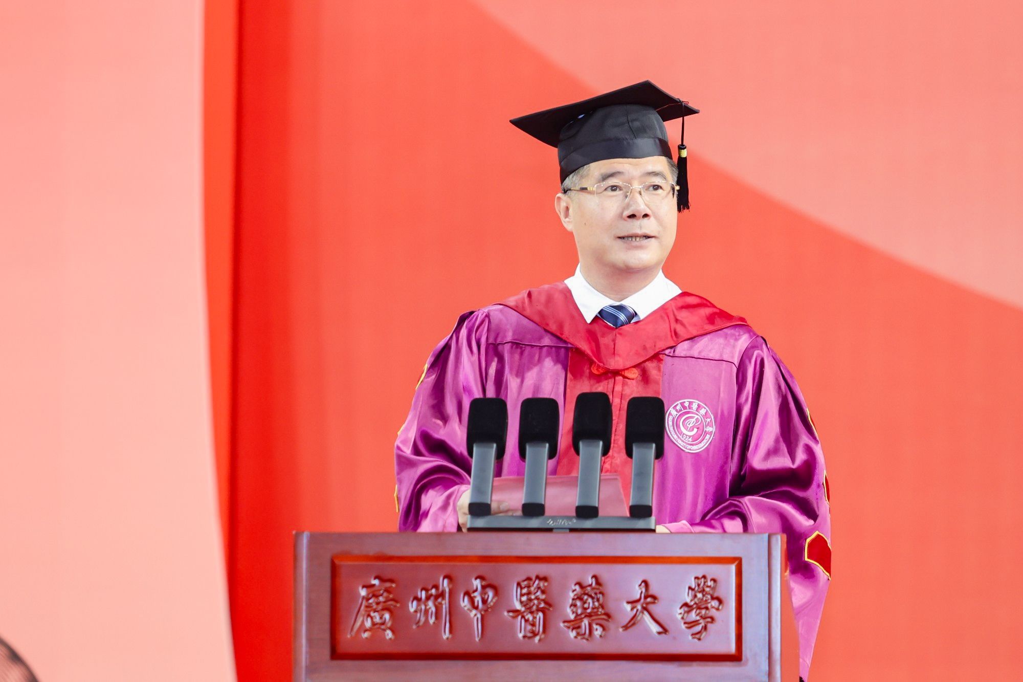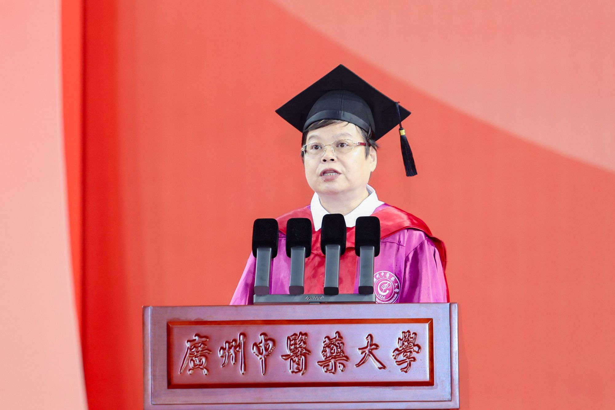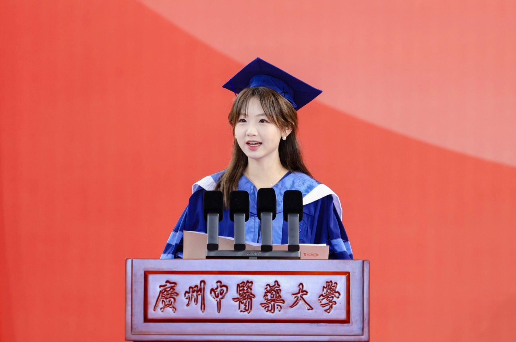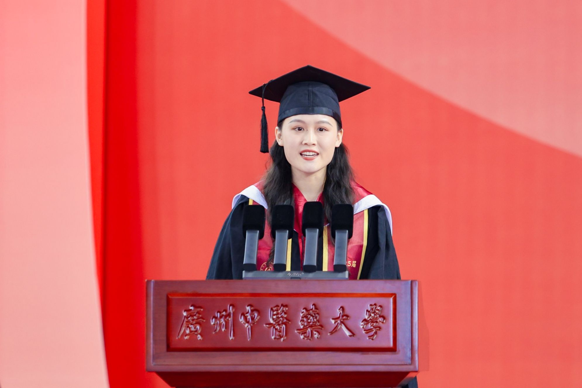 本科毕业生代表、2020级中医学专业郑嘉敏同学表示,站在新的起点,将把在广中医汲取的智慧与力量,化作悬壶济世的担当与勇毅。