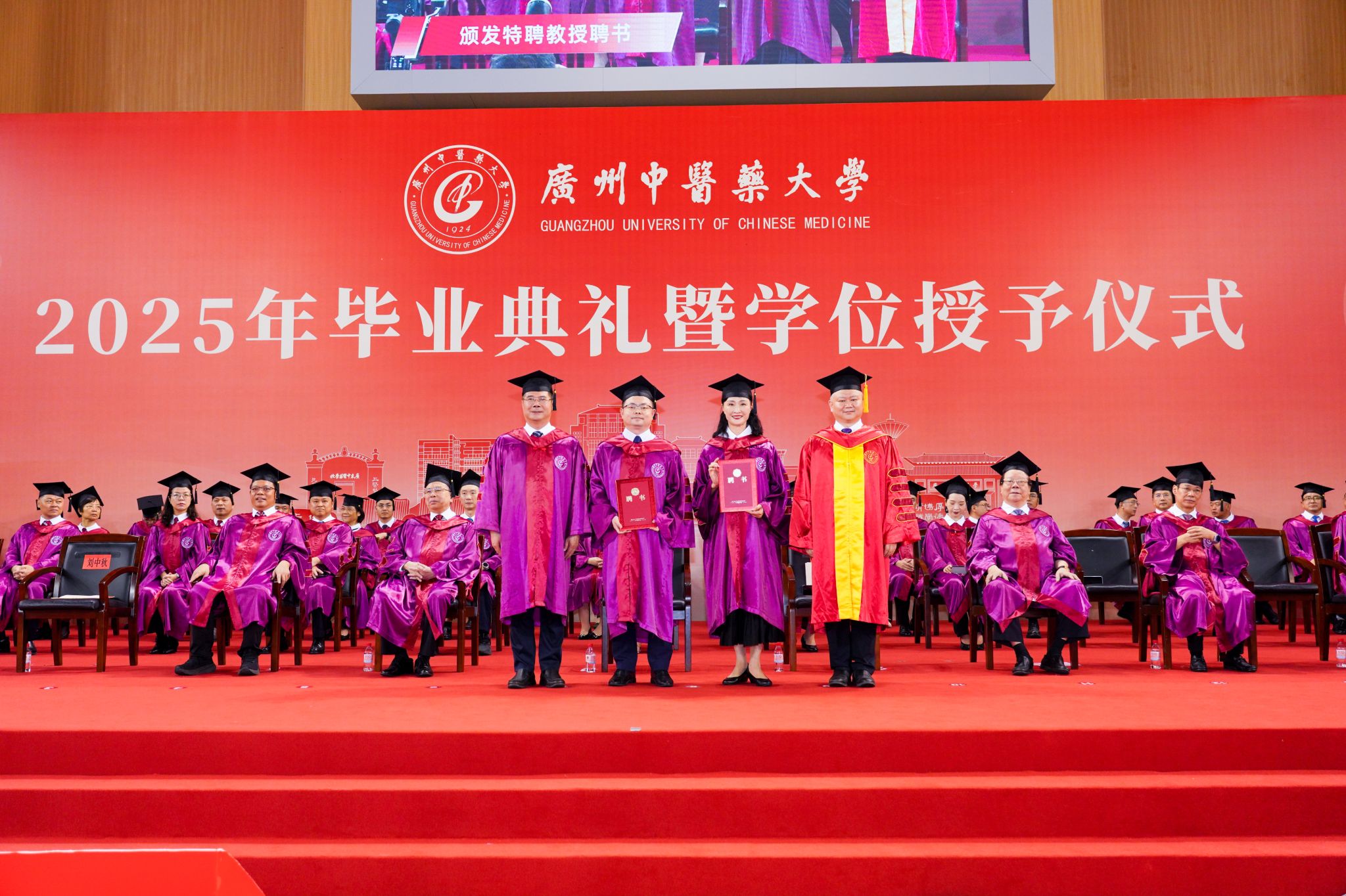 典礼还为“刘李中医药创新奖”获得者及优秀毕业生代表颁发荣誉证书,并为特聘教授朱海涛先生、陈丹女士及校友联络员代表颁发聘书。