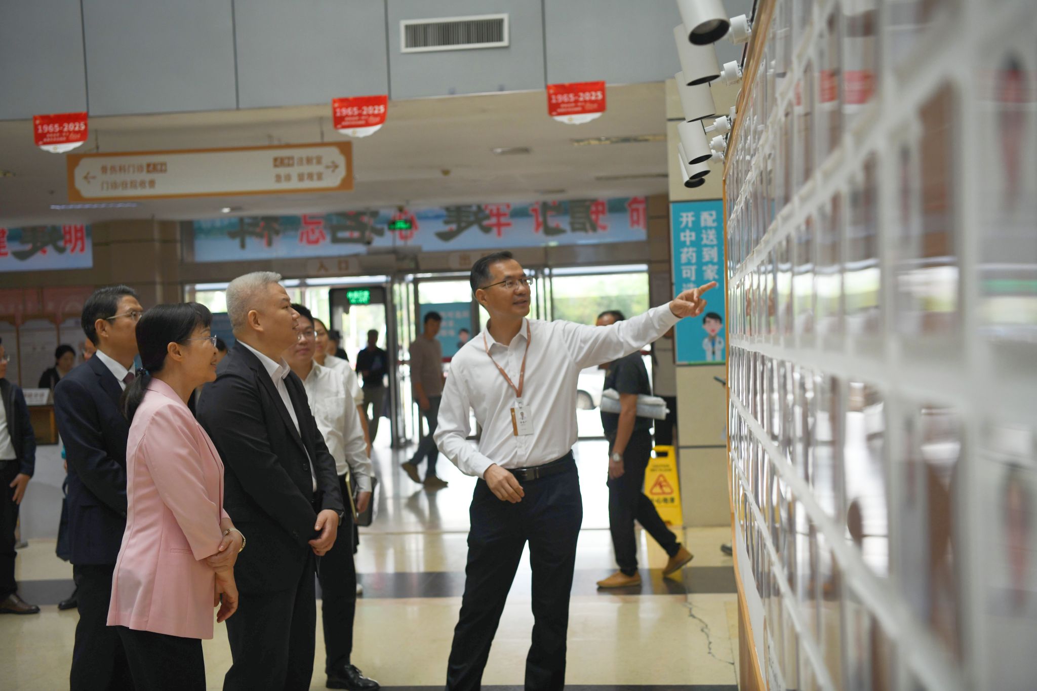 活动伊始,王宏斌校长一行在阳江市副市长柯燕的陪同下,实地考察了阳江市中医医院,并与院方进行了座谈交流。座谈会上,双方围绕医院高质量发展以及校院合作规划目标的具体实施路径展开了深入探讨。王宏斌校长表示,学校将充分发挥平台优势,秉持“大广中医”理念,为阳江医院全面赋能,推动其实现跨越式发展。