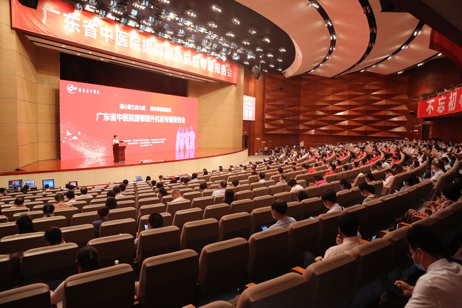 第二批国家援助湖北中医疗队队长、医院副院长张忠德等88名援鄂医疗队队员,中国赴马来西亚抗疫医疗专家组组长、医院副院长李俊等齐聚一堂,总结中西医结合战疫经验,为更好地弘扬大医精诚精神、广东医生精神、叶欣精神,传承创新发展好中医药注入新的动力。抗疫英雄张忠德、黄东晖、颜芳、邹旭、张兴展、刘宇、郭建文、李俊等八位同志在报告会上分享抗疫亲身经历和体会。