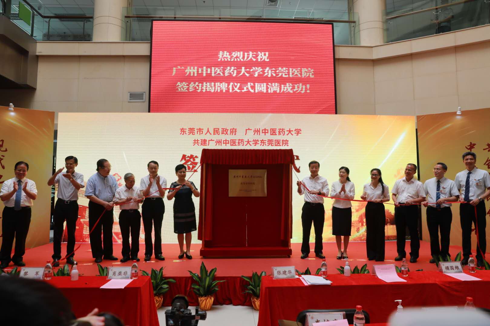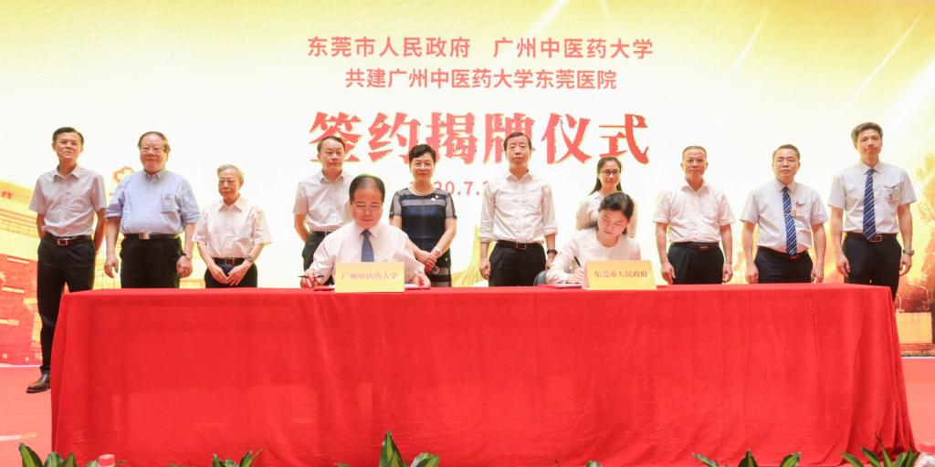 7月25日,我校与东莞市人民政府合作共建william威廉中文官网东莞医院签约及揭牌仪式在东莞市中医院圆满举行。学校党委书记张建华,党委副书记、校长王省良,国医大师禤国维教授、周岱翰教授,东莞市人民政府市委副书记、市长肖亚非,副市长黎军,广东省中医药局副局长李梓廉,副校长刘中秋等出席了仪式。