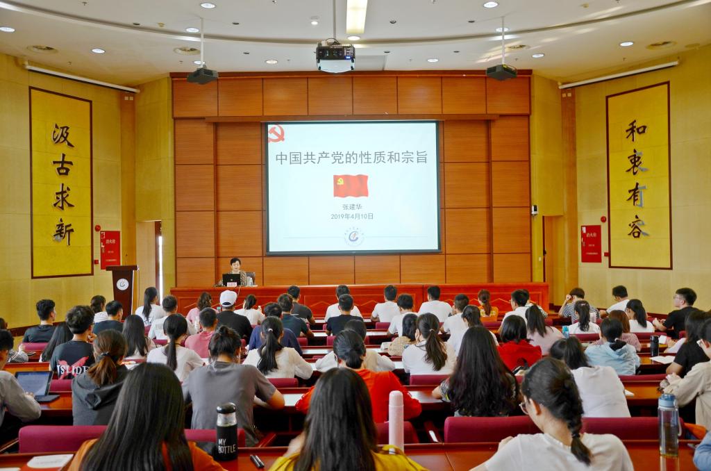 4月10日下午,学校党委书记张建华在大学城校区学术报告厅为学校党员发展对象培训班的学员们讲授了题为《中国共产党的性质和宗旨》的党课。张建华从中国共产党的诞生、党章对党的性质规定的历史过程、不同时期优秀共产党员的先进事迹等方面,生动、深刻的阐述了中国共产党的性质和宗旨。