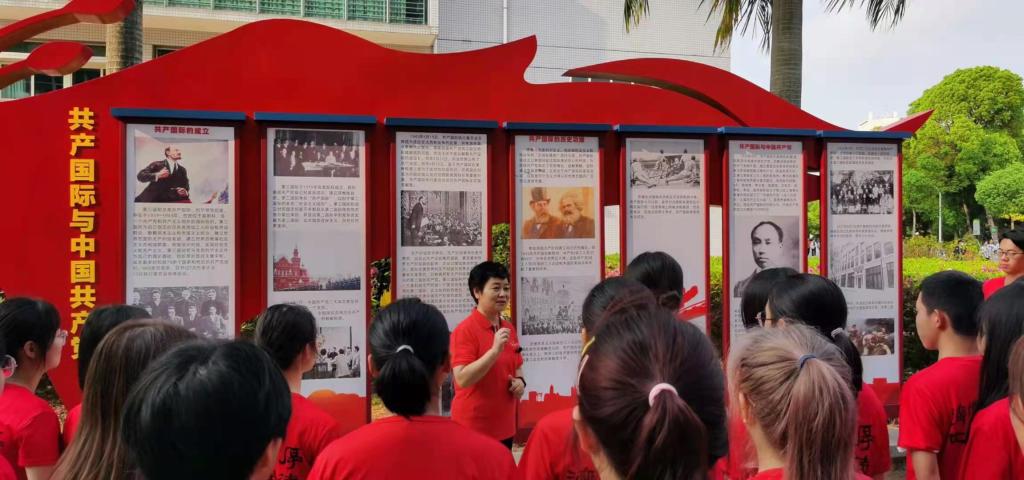在这堂题为《重温党史,铸就忠诚》的思政课上,张建华带领同学们走出课堂,来到思政广场,以讲故事的形式向同学们讲授党史。张建华从李大钊、陈望道、陈独秀等革命先驱者在十月革命后宣传推介马克思主义的故事,告诉同学们马克思主义具有强大的真理力量和实践力量,用发展着的马克思主义指导新的实践,才能确保党和人民的事业不断从胜利走向胜利;在党旗下,张建华讲述了中国共产党成立纪念日确立的背景与历史,回顾了光荣辉煌、艰苦卓越的百年历史;张建华还以彭湃、周文雍、陈铁军等发生在广州的红色故事,传递革命先辈们对党忠诚、有信仰、有担当的革命精神。她以丰富的革命先辈故事,生动阐述了中国共产党领导人民创造的伟大历史、铸就的伟大精神、创造的伟大奇迹,勉励同学们珍惜今天来之不易的学习环境,传承发展“红船”精神,继承革命先辈的坚定信念,勇于担当,勇于奋进,在中医药事业中践行文化自信,从学习党史中汲取力量,积极投身强国伟业。
