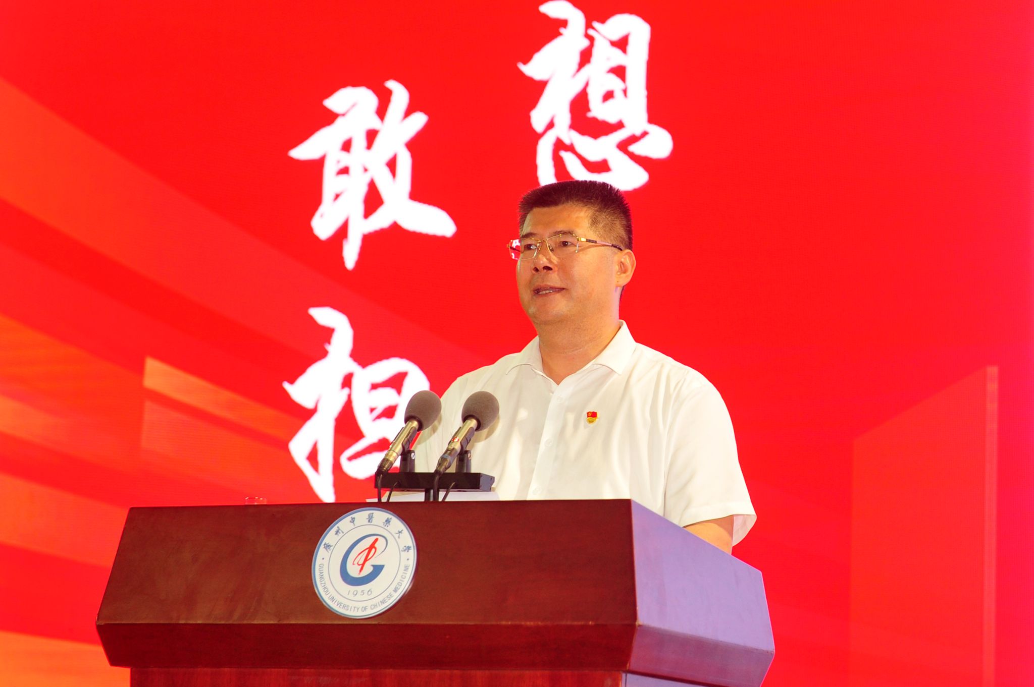 陈文锋对同学们提出四点期望。他希望同学们要坚定理想,树牢信念,做有理想的新时代好青年,从“铁杆中医”邓铁涛教授、亲身实验证实青蒿素抗疟功效的李国桥教授等广中医前辈们身上汲取力量,筑牢信仰,坚定不移听党话、跟党走、感党恩,自觉做习近平新时代中国特色社会主义思想的坚定信仰者、积极传播者、忠实实践者;要敢于担当、善于作为,做敢担当的新时代好青年,作为新一代的广中医人,要在发扬斗争精神上下功夫,在应对重大挑战、抵御重大风险、克服重大阻力、解决重大矛盾中经风雨、见世面、壮筋骨、长才干;要勤学善思、刻苦磨炼,做能吃苦的新时代好青年,传承中国共产党人不怕苦、能吃苦、肯吃苦的精神品格,把“迎难吃苦”当作人生的历练和考验;要勤俭节约、艰苦奋斗,做肯奋斗的新时代好青年,把“小我”融入“大我”,把个人奋斗目标与国家、民族、人民的利益紧密地结合在一起,为实现人民幸福、民族复兴的初心与使命不懈努力。“同学们,新的号角在入学时就吹响了。起步就是冲刺,开局就是决战!一代人有一代人的使命,一代人有一代人的担当,你们必将肩负更重的担子、更多的责任!”他号召同学们保持奋力、奋发、奋勇、奋斗的积极姿态,勤学苦练,不负韶华。