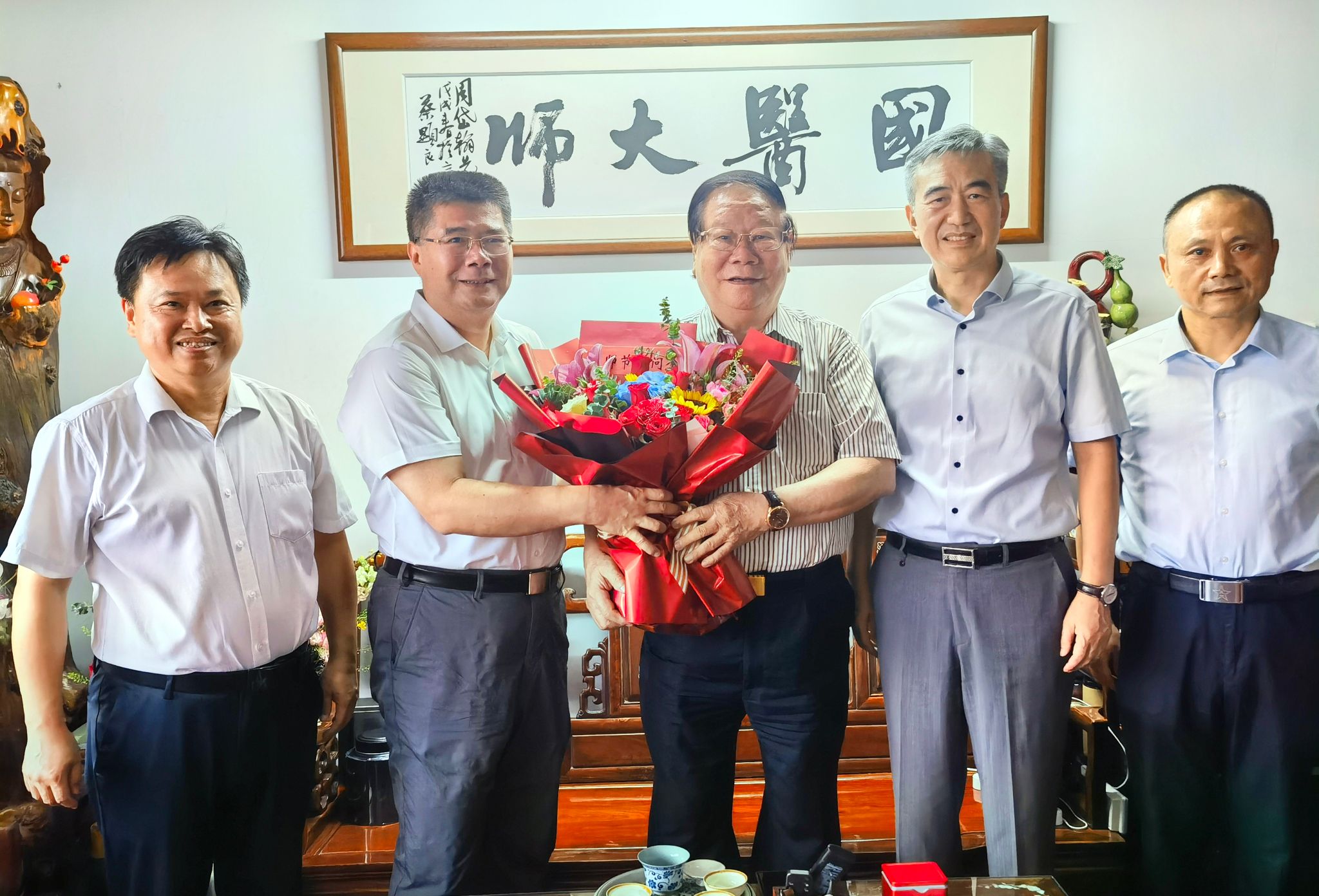 在第40个教师节来临之际,学校党委书记陈文锋、校长王伟等全体校领导分别到各教学、科研单位走访,慰问刘良院士、国医大师周岱翰教授、国际知名疟疾防治专家李国桥教授等教学、科研、医疗一线的教师代表和离退休人员代表,感谢他们辛勤的付出,对他们致以诚挚的问候和节日的祝福。