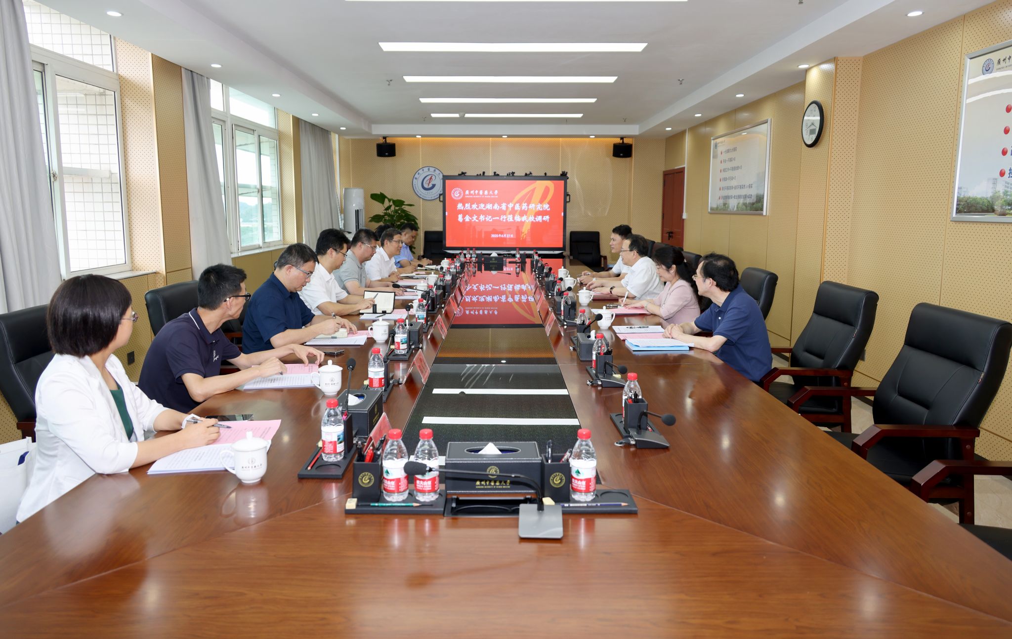 6月27日下午,湖南省中医药研究院党委书记、院长葛金文一行莅临我校开展马克思主义基本原理同中国具体实际相结合、同中华优秀传统文化相结合调研交流。学校党委书记陈文锋,党委常委、副校长史亚飞参加座谈会。公共卫生与管理学院院长马利军主持会议。