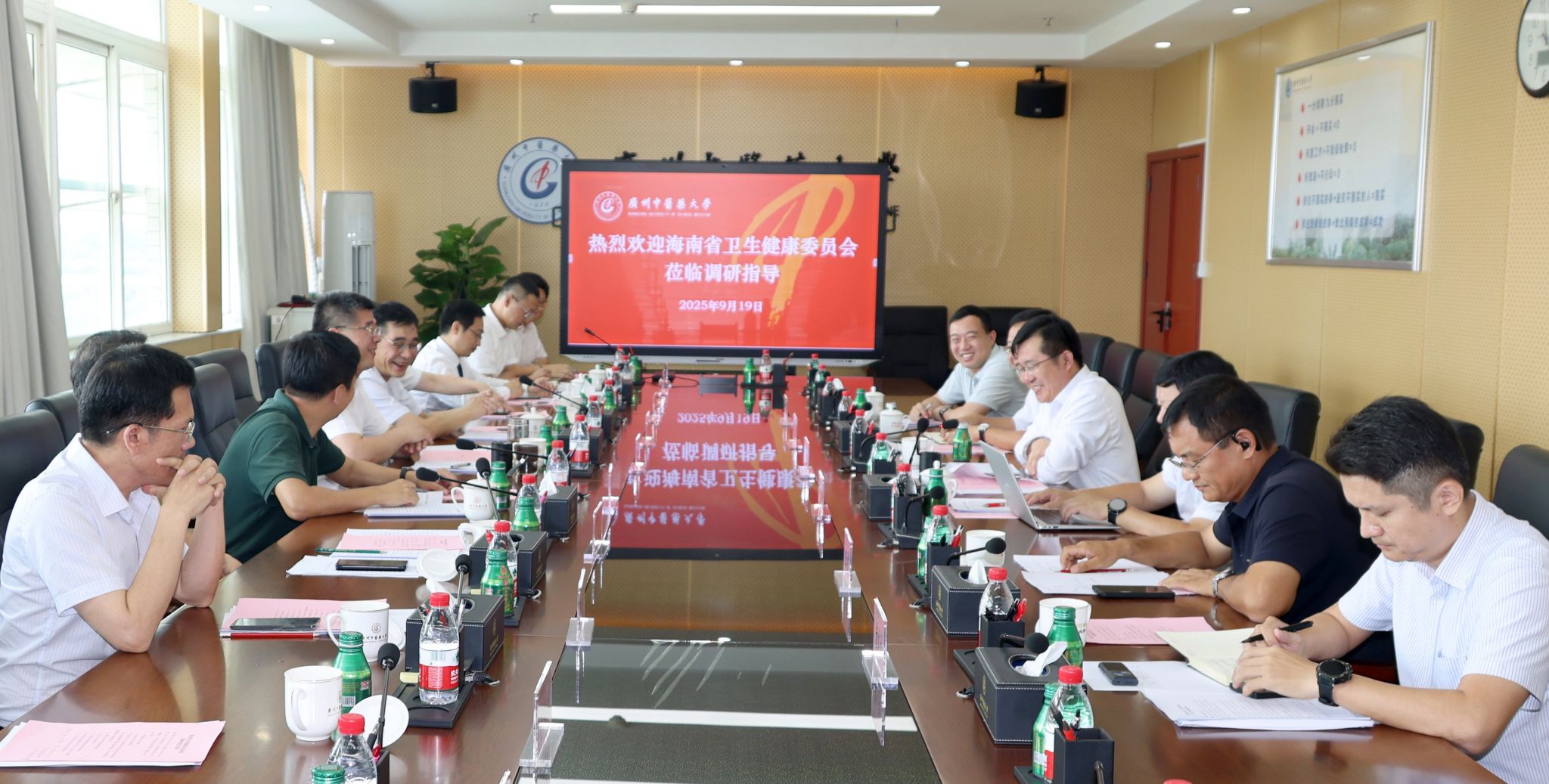 9月19日上午,海南省卫生健康委党委书记、主任李文秀率队来校调研交流。学校党委书记陈文锋、广东省中医药局副局长柯忠、广东省教育厅发展规划处副处长魏天翔等参加调研座谈。