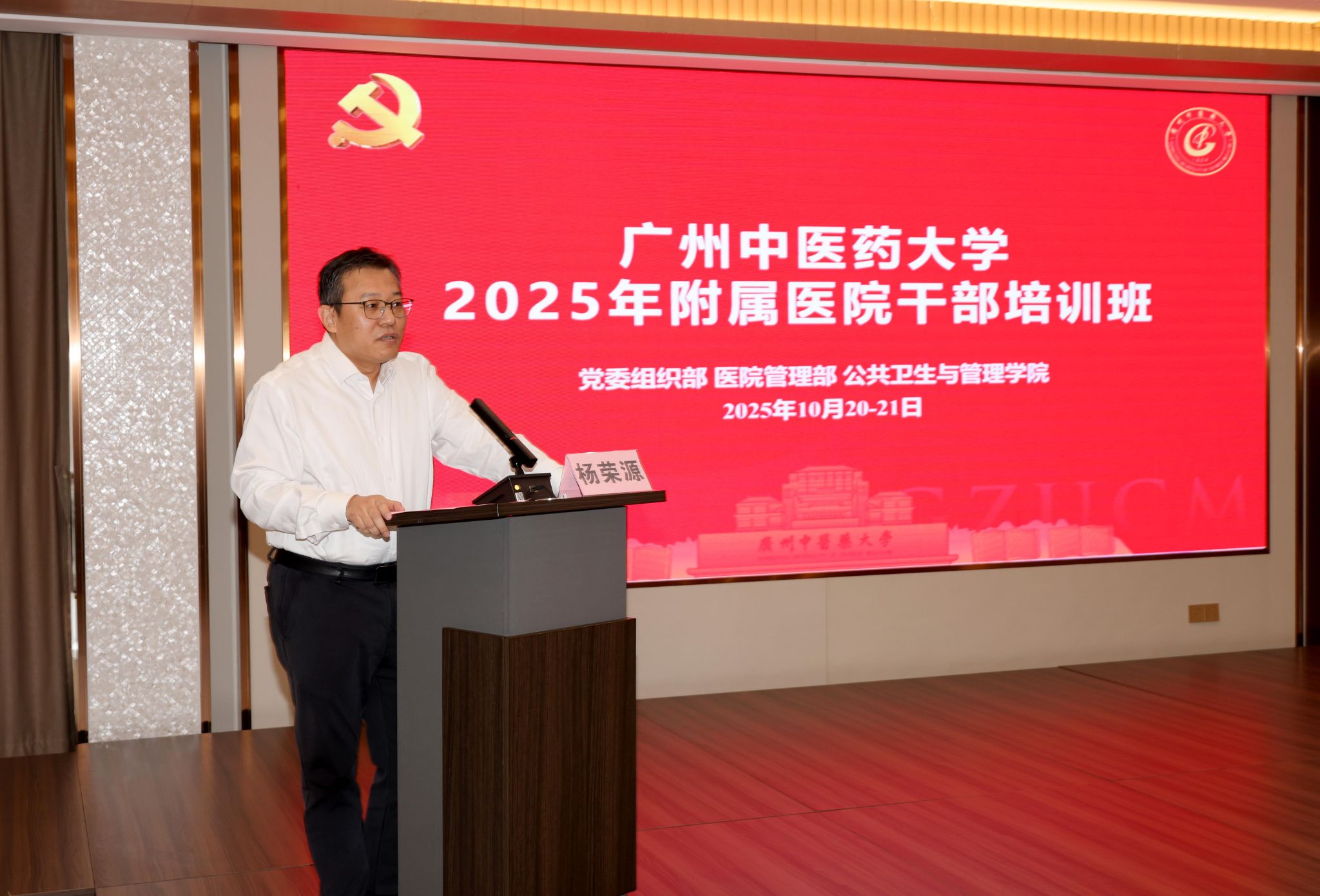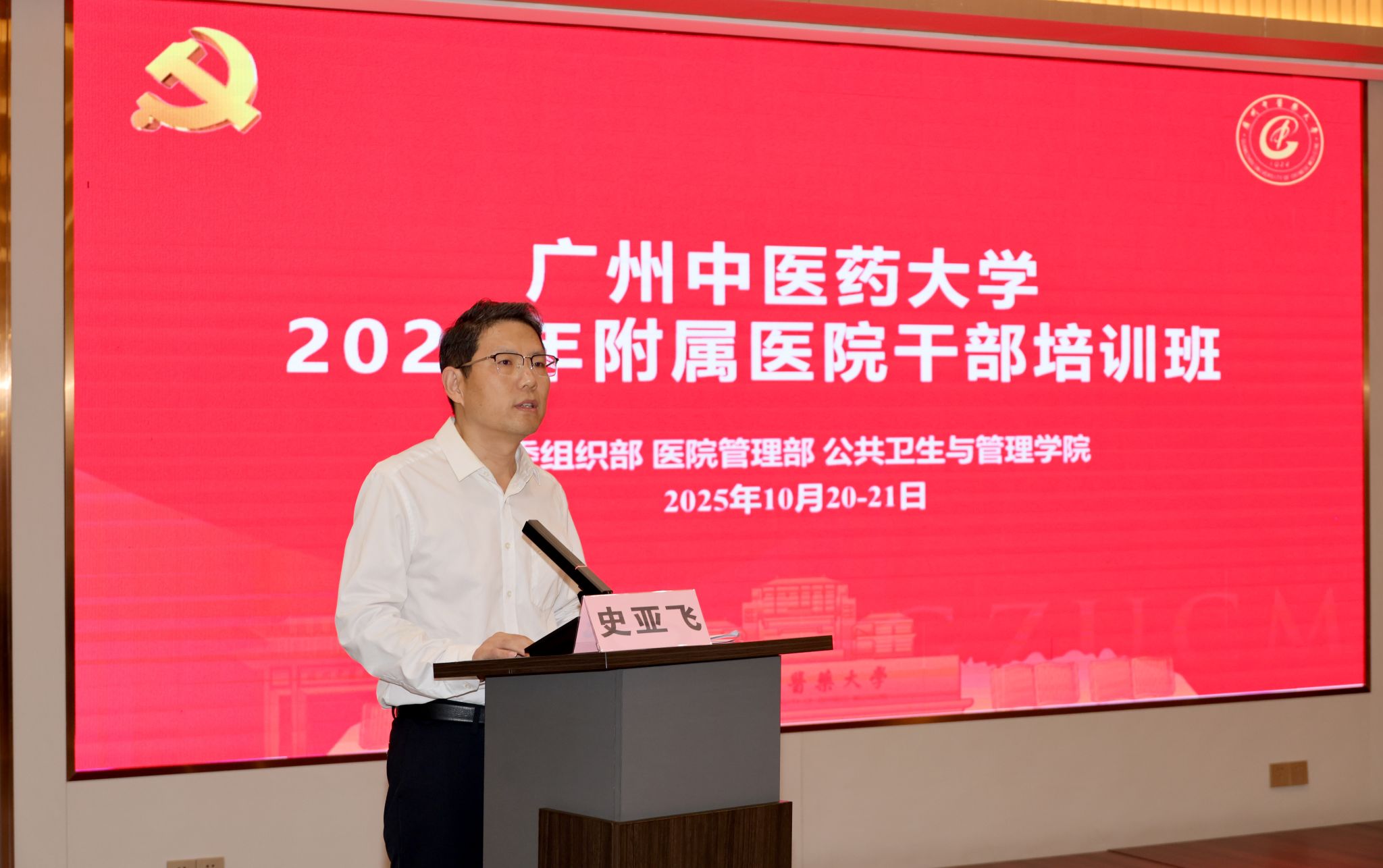 在开班仪式上,陈文锋强调,附属医院是大学的重要组成部分、医学人才培养的主阵地与学校发展的战略支点,需坚守“大学好,附属医院才能好;附属医院好,大学才能更好”的理念,凝聚“大广中医”共识与力量,推动校院“双融双促”高质量发展及粤港澳大湾区中医药高地建设。同时,他对培训提出三点要求:一是以“时时放心不下”的紧迫感明晰发展坐标;二是以“事事落地见效”的硬标准深化学习成果;三是以“人人奋勇争先”的精气神狠抓工作落实。