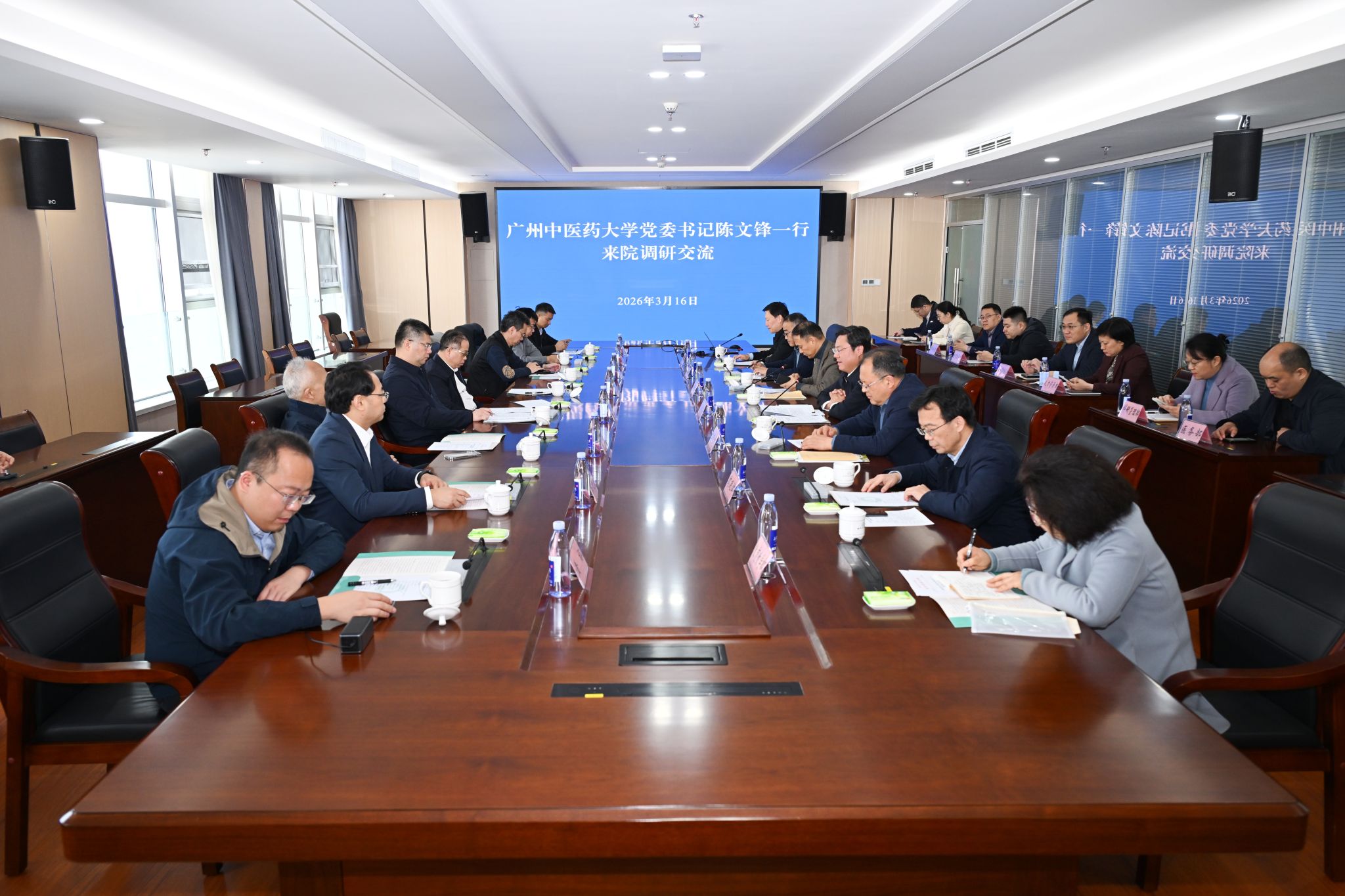 3月16日,学校党委书记陈文锋率队到山东省临沂市人民医院(我校研究生培养基地)调研研究生招生培养、导师队伍建设、学科专科建设情况,副校长刘中秋参加调研。临沂市副市长张秀丽,临沂市卫生健康委党组书记、主任,中医药管理局局长刘恒波,临沂市人民医院党委书记李凤鸣,党委副书记、院长车峰远等参加调研座谈交流。